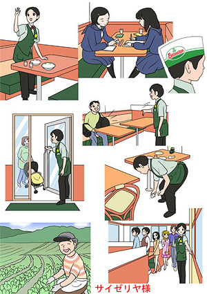 | サイゼリヤ様のマニュアル用 イラストを500点以上作成 致しました。 |