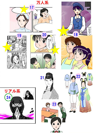 万人系…誰にでも親しみや すいタッチです。 リアル系…男性向きです。 |