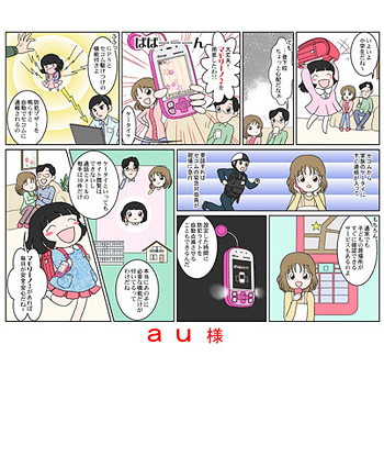 | auの子ども向け携帯電話の説明 漫画です。 |